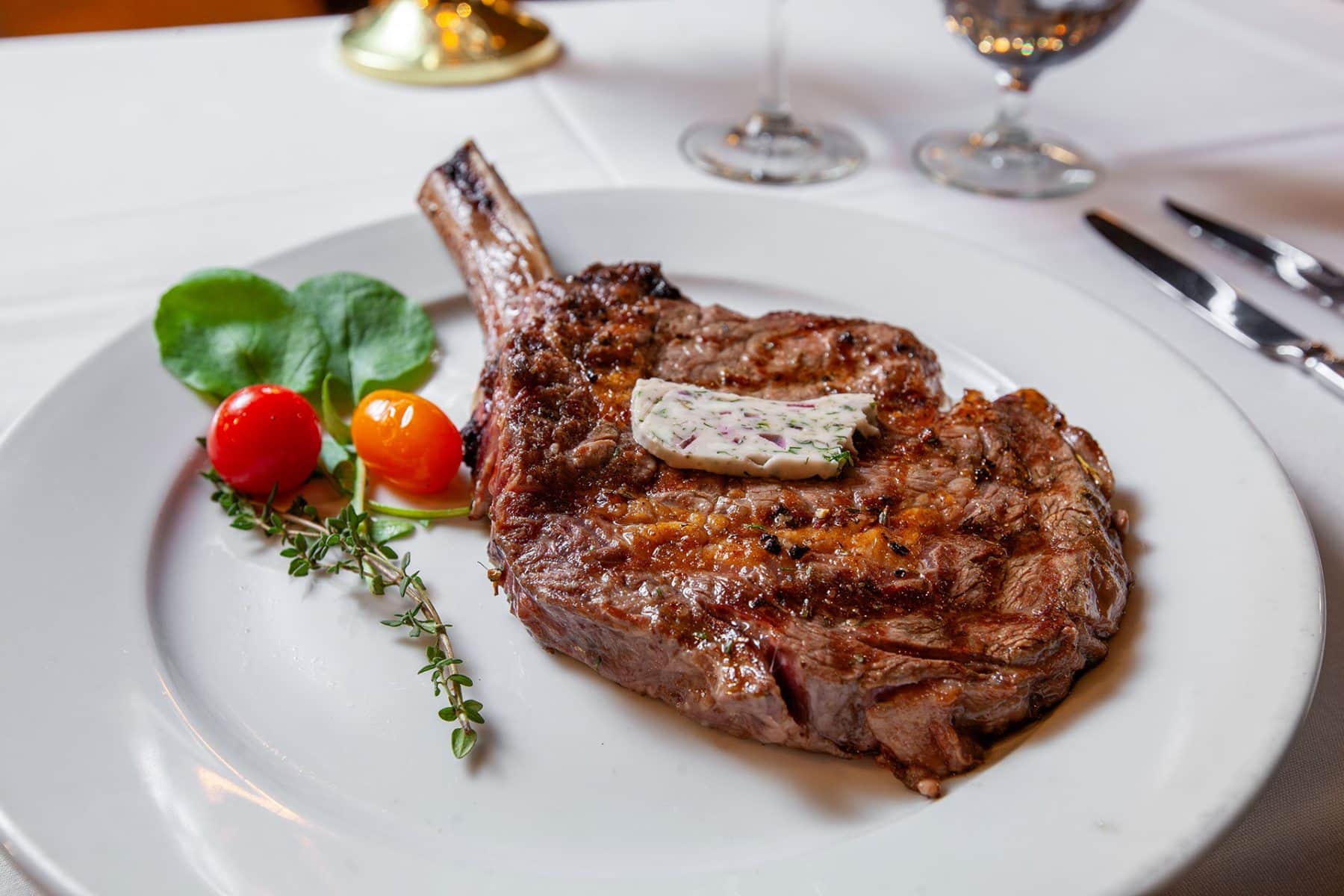 Kansas City Strip Bone-In New York: For steak lovers, the Kansas City Strip Bone-In New York is a standout. Sourced from Chicago’s famed stockyards, this USDA Prime Aged Beef is known for its robust flavor and perfect marbling. The steak is grilled to your preferred temperature, ensuring a juicy and tender bite every time. Topped with a luxurious roasted shallot truffle butter, this dish delivers a deep, rich flavor that enhances the natural taste of the beef. It’s a hearty, satisfying entrée that’s perfect for those craving a classic, high-quality steak.