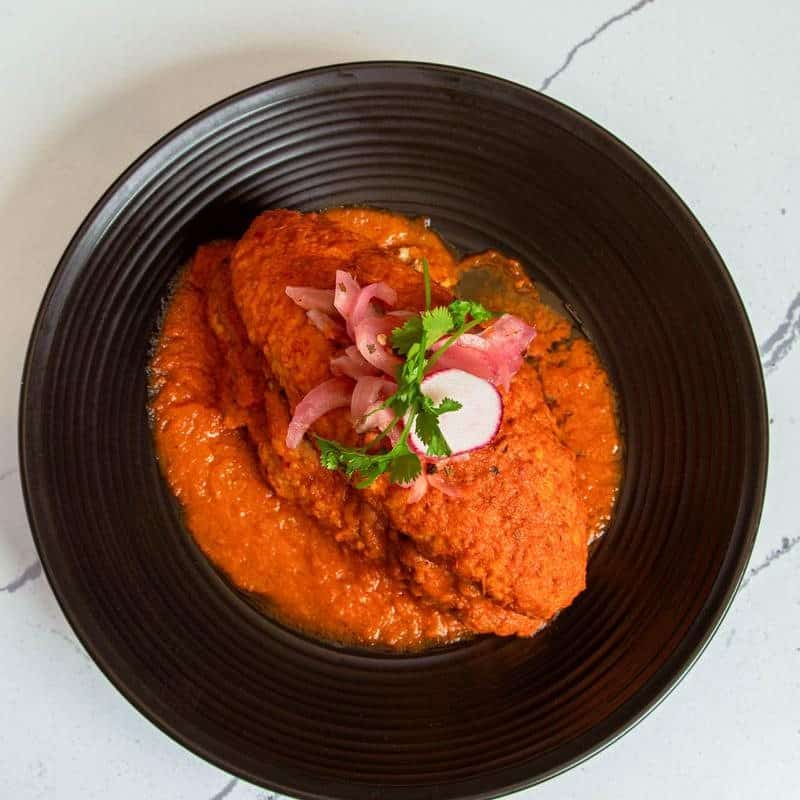 Torta Ahogada: The Torta Ahogada is Tac/Quila’s take on a classic Mexican sandwich, featuring tender carnitas and creamy refried beans layered with pickled onions, all smothered in a rich herb tomato sauce. This dish is comfort food at its finest, offering a satisfying blend of savory, tangy, and slightly spicy flavors. The sauce-soaked bolillo bread absorbs all the delicious juices, making each bite an explosion of taste and texture.