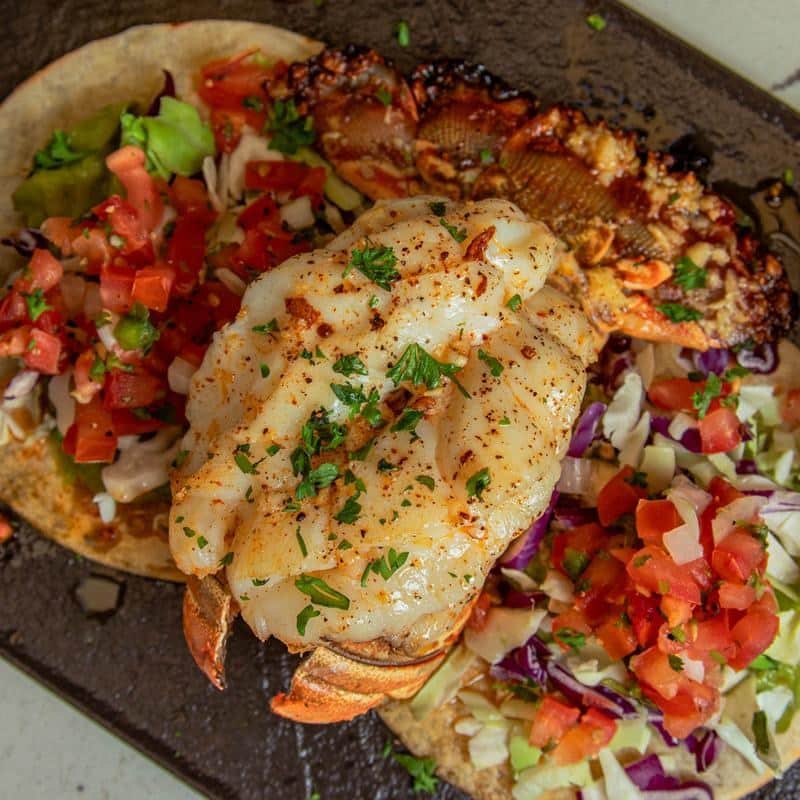 Grilled Lobster Tail Tacos: A luxurious and flavorful offering, the Grilled Lobster Tail Tacos are perfect for those looking to indulge. The tacos feature succulent grilled lobster tail, served in the shell and brushed with chile oil for a hint of spice. They’re complemented by an avocado spread, crisp cabbage, and fresh pico de gallo, all wrapped in warm flour tortillas. Accompanied by a spicy Mexican slaw and arroz verde, these tacos provide a perfect combination of richness, freshness, and spice.