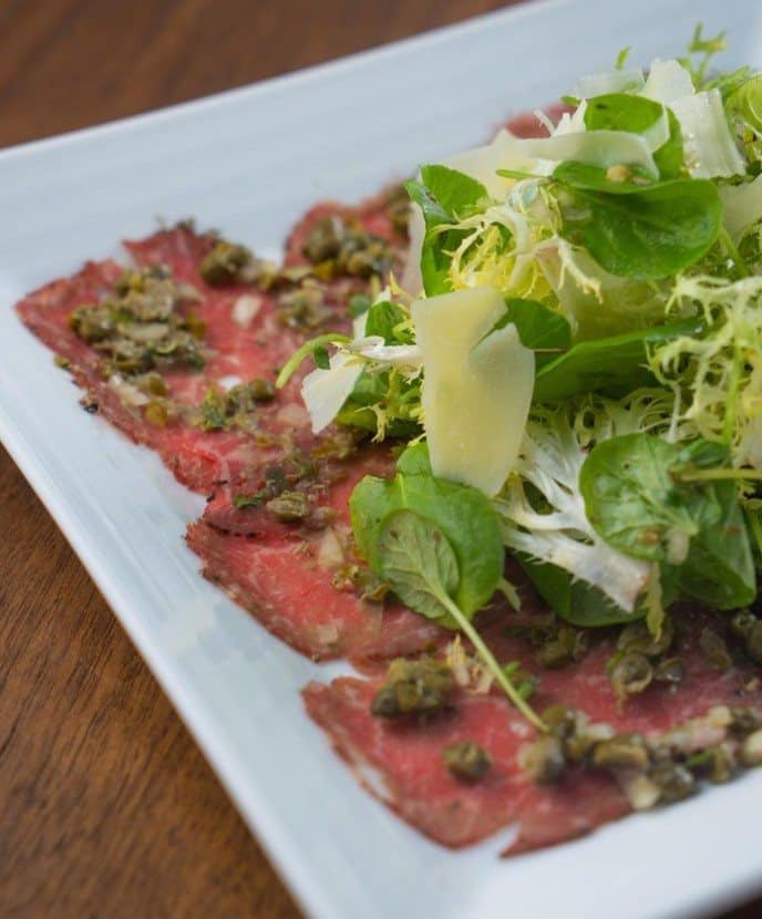 Beef Carpaccio: A sophisticated option, the Beef Carpaccio at The Front Porch is a beautifully presented dish that showcases thinly sliced raw beef tenderloin. Topped with peppery watercress, frisée lettuce, briny capers, and finely chopped shallots, the carpaccio is dressed with black truffle oil and garnished with shaved pecorino Romano cheese. The combination of flavors is fresh, light, and perfectly balanced, making it an excellent choice for a starter or a light main course.
