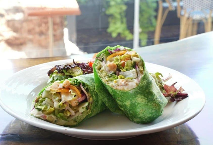 Vegan Wrap: The Vegan Wrap is a vibrant, fresh option for those seeking a plant-based meal. Wrapped in a spinach tortilla, this wrap is filled with chickpeas, crisp cucumbers, vegan sour cream, romaine lettuce, red onion, cherry tomatoes, and fresh guacamole. The combination of ingredients offers a satisfying crunch and a burst of flavors, from the creaminess of the vegan sour cream and guacamole to the freshness of the vegetables. It’s a healthy, filling choice that doesn’t compromise on taste.